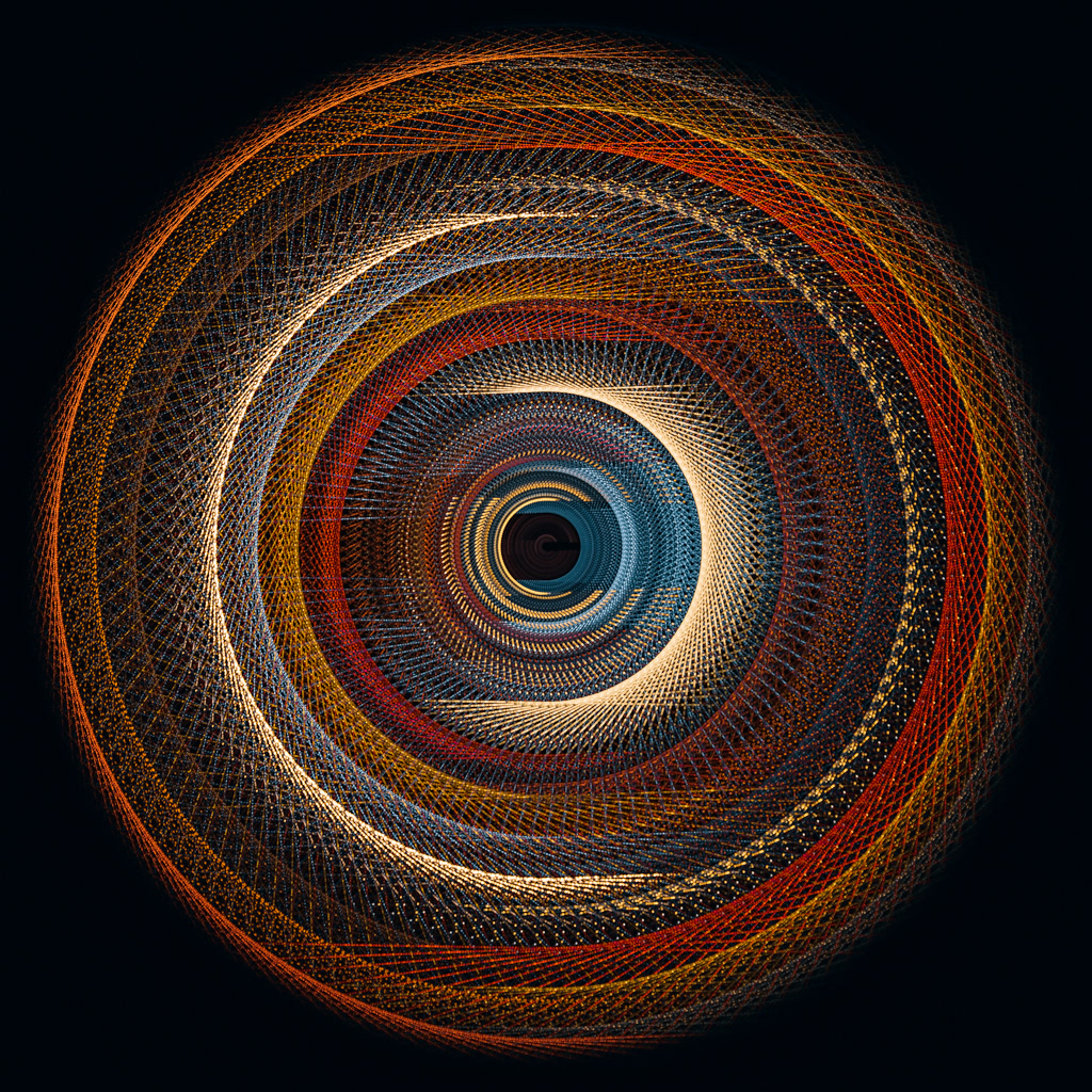 I enjoy pushing the limits of my camera's capabilities and experimenting with new techniques to capture ordinary objects. My collection of art supplies includes numerous spools of colored thread from previous projects. I wanted to photograph this thread in a unique way and came up with the idea to wrap various colored strands randomly around an open picture frame. Then, I placed the frame on a motorized rotating platform and set my camera to multiple exposure mode. I captured sixty to eighty photos of the thread at sixty to eighty equidistant positions as I rotated the platform. This is a meticulous process that requires much patience. I used an in-camera multiple exposure of sixty to eighty frames for each image.